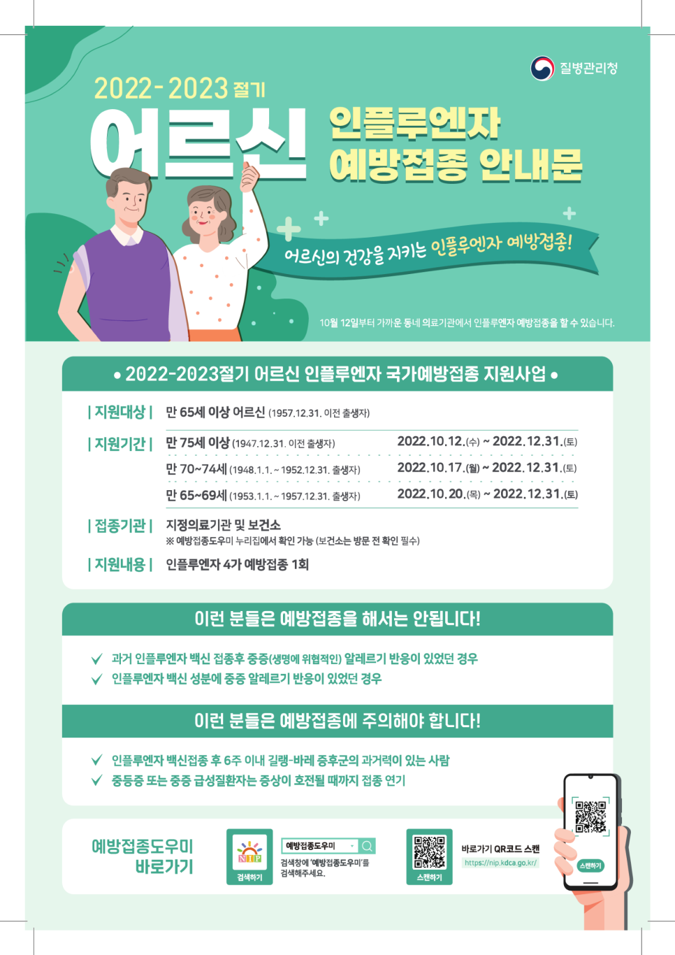 | 만 75세 이상(1947.12.31 이전 출생자) | 2022.10.12(수) ~ 2022.12.31(토) |