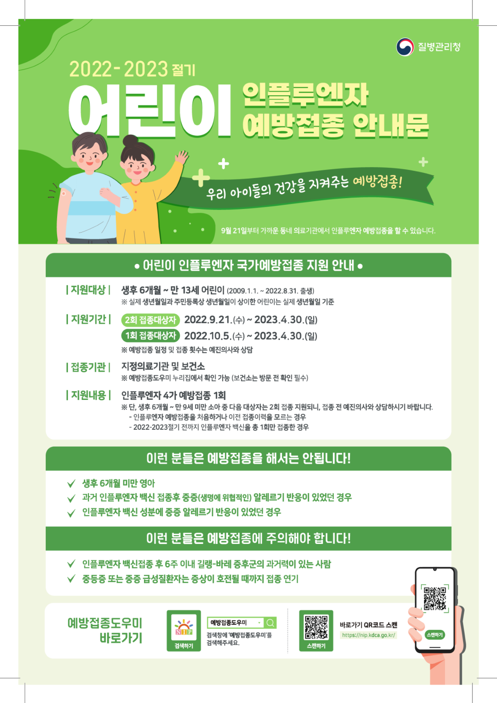 2. 어린이 : 생후 6개월 ~ 만 13세 어린이(2009.1.1 ~ 2022.8.31 출생아_실제 생년월일 기준)
