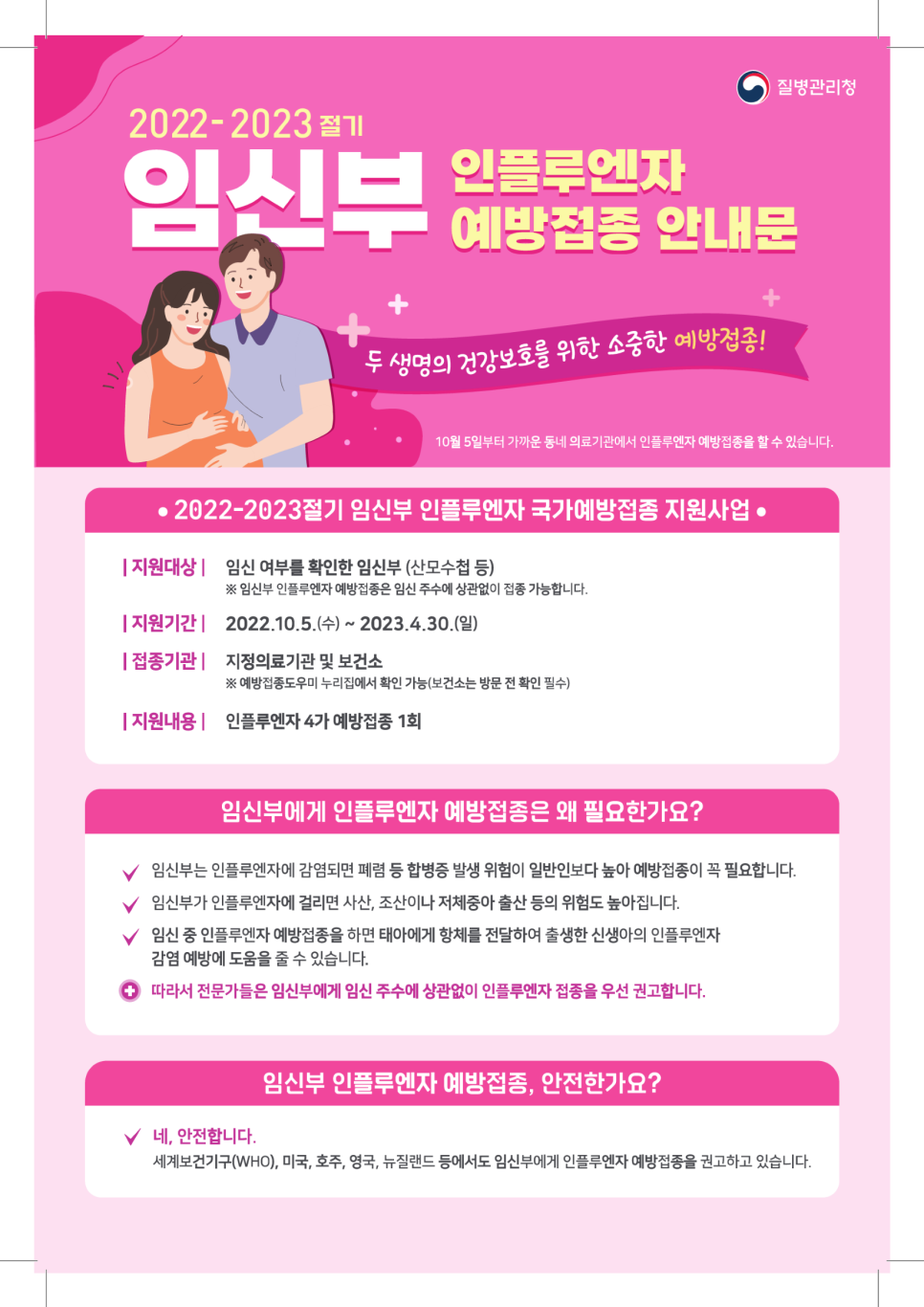 | 임산부 | 2022.10.5(수) ~ 2023.4.30(일) |