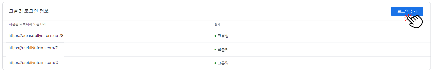 10. 크롤러 로그인 정보에 방금 추가한 정보가 나오고, "크롤링 안 함"으로 되어 있습니다.