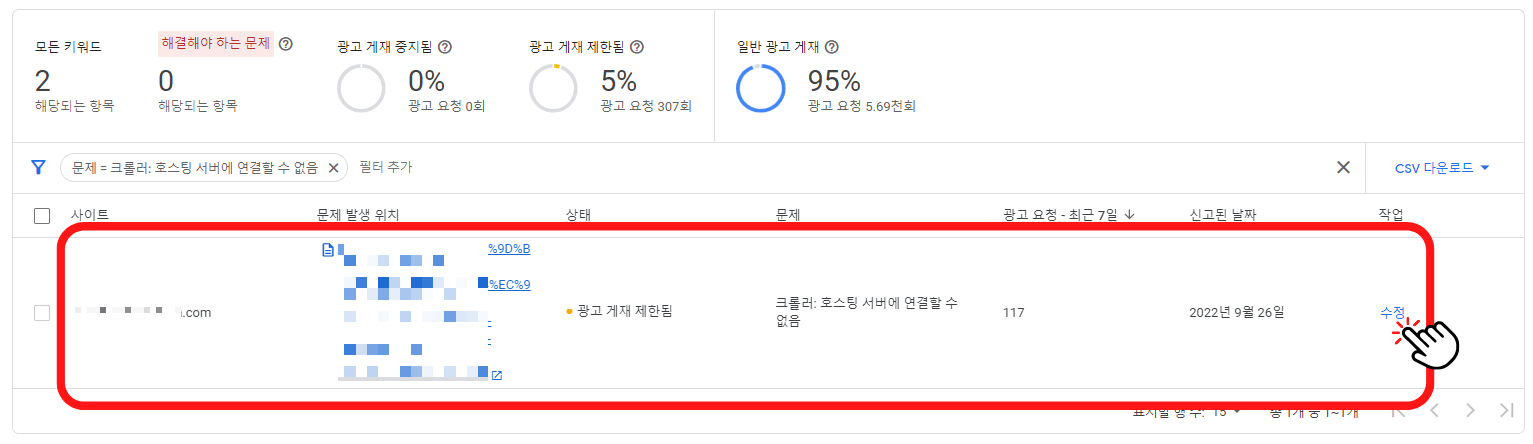 6. 발견된 문제가 무엇인지 확인(크롤러: 호스팅 서버에 연결할 수 없음)