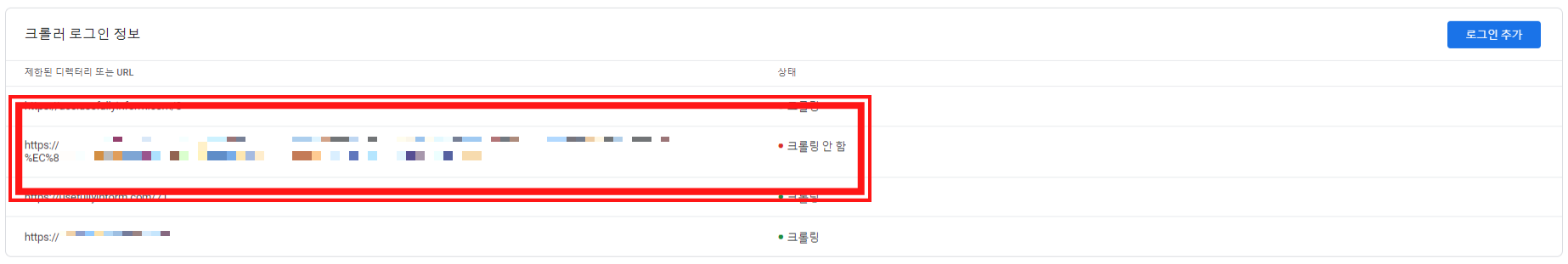 10. 크롤러 로그인 정보에 방금 추가한 정보가 나오고, "크롤링 안 함"으로 되어 있습니다.