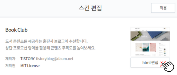 3. 티스토리 접속 : 블로그 관리 > 꾸미기 > 스킨 편집 > html 편집