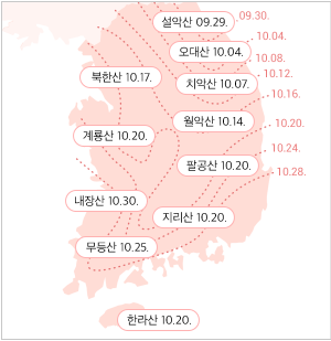 설악산, 오대산, 북한산 등 유명산 단풍현황을 확인하세요