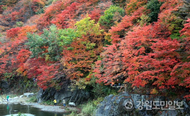 10월 14일 ~ 10월 16일 사흘간 열리는 태백 철암 단풍축제에서 곱고 붉은 단풍이 절경을 이루는 모습을 만나실 수 있습니다. 계곡과 단풍이 만나 절경을 이룹니다.